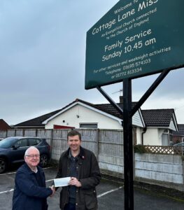 Mike Prendergast Presents £1,000 to Cottage Lane Mission